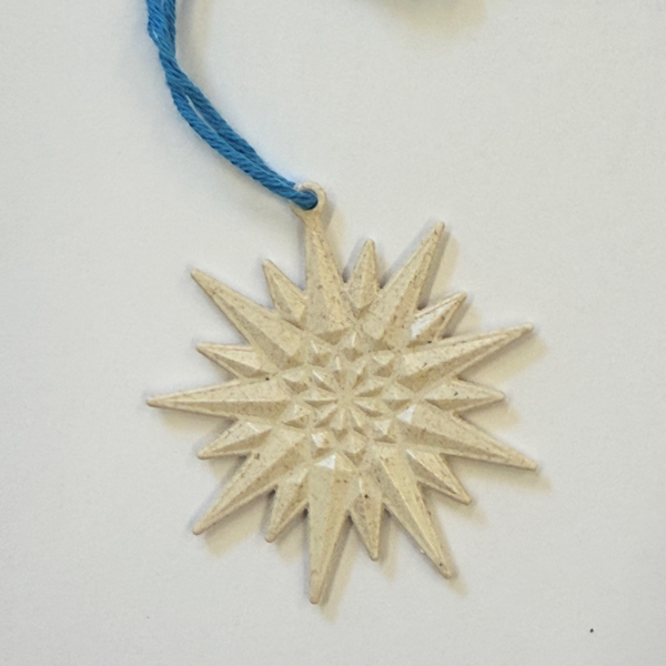 L'étoile est soit en magnet soit accrochée sur un petit cordon en laine. L'étoile est en sulapac, un matériau biodégradable aux multiples usages.